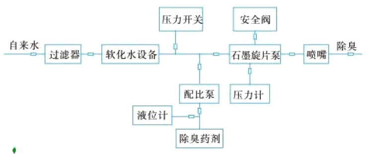 ◆進水先經過軟化水裝置對水質進行軟化,以保證降塵除臭系統的使用壽命;◆藥劑用比例配比泵按設計的流量自行配比;